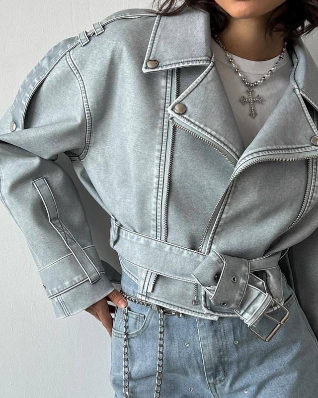 Косуха сіра жіноча Модель: 2488 Розміри: S, M, L Матеріал: екошкіра на підкладці