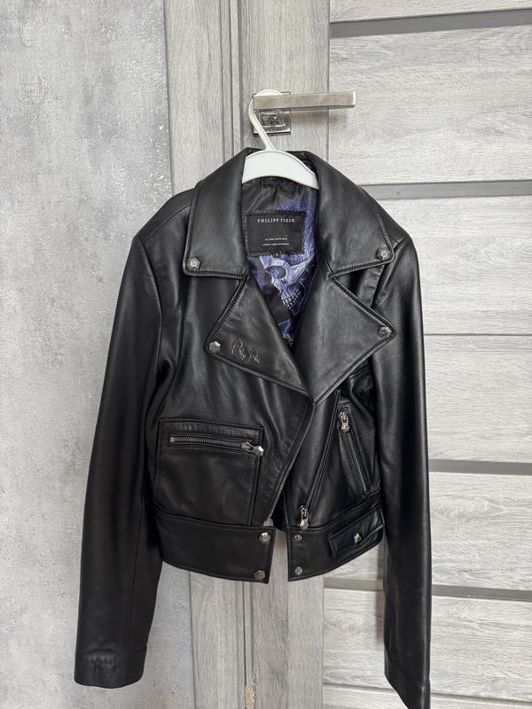 Чорна шкіряна укорочена куртка Philip Plein в розмірі S. Натуральна шкіра. Дуже стильна куртка, стан нової, одягала 2-3 рази.