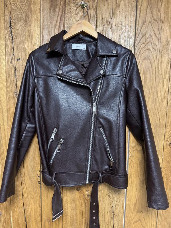 Жіноча шкіряна куртка Reserved. З еко шкіри. Розмір S, підійде на М. Дуже красивий шоколадний колір. Без дефектів