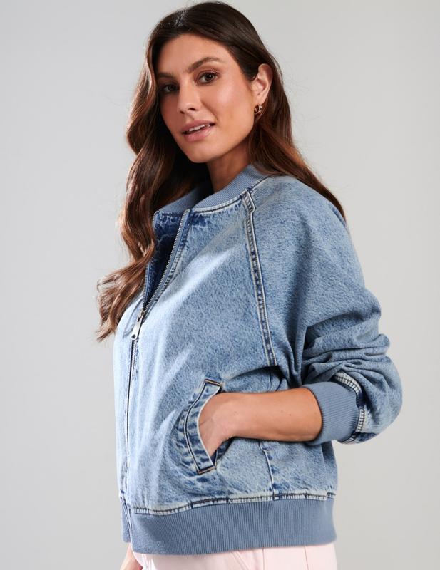 Новий джинсовий бомбер з кишенями . Довжина -55 ПОГ-56 рукав від горловини -70 ширина внизу -51(трикотажний манжет , тягнеться)