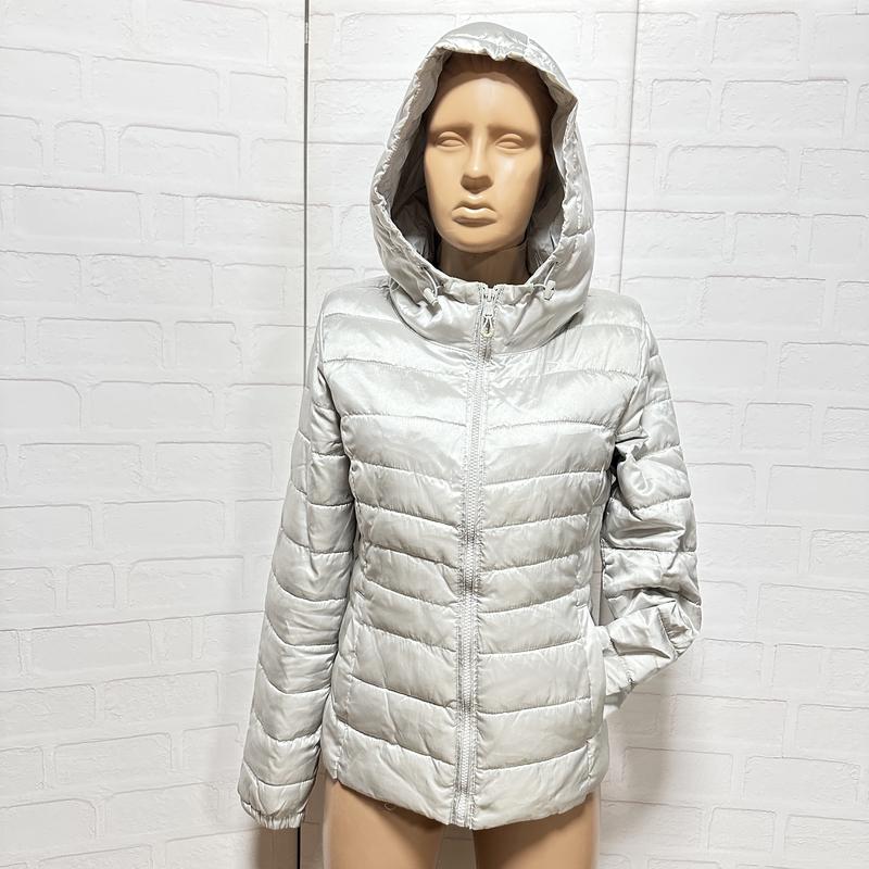 Гарненька коротка демі від ONLY, кишені без застібок, капюшон не знімається. Колір сріблястий, перламутровий . Ог-94, рукав-62, довжина 60