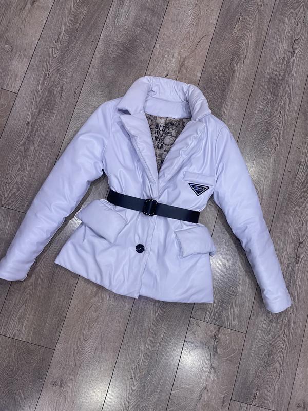 Жіноча тепла біла шкіряна куртка-піджак під пояс Pr&da Розмір S Є незначні недоліки, видно на останніх фото, ціна відповідно знижена. Якщо вдягнути, то н