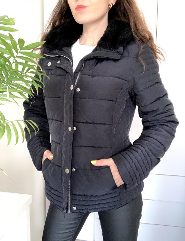 Стьобана курточка New Look. Темно темно-синього кольору. Маркіровка 10. 165/88А Ширина плечей 41 см Ширина грудей півобхват 48 см Талія півобхват 42,5 см Довжина рукава від плеча 64 см Довжина по спині 59 см