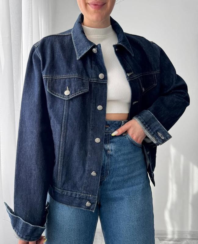 Темно синя джинсовка AJ Стан ідеальний, є забруднення в середині на кармашці Розмір: 52/36/M-L Параметри: пів обхват ОГ- 57-58 см ОТ- 54 см ОБ- 51-52 см Довжина: 62 см Рукав: 66 від горла 80 см Плечі: 46 см Біцепс: 27 см