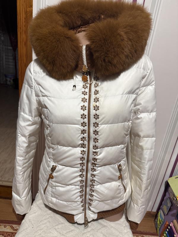 Зимова куртка з вишивкою з натурального пуху. Комір натуральний з песця