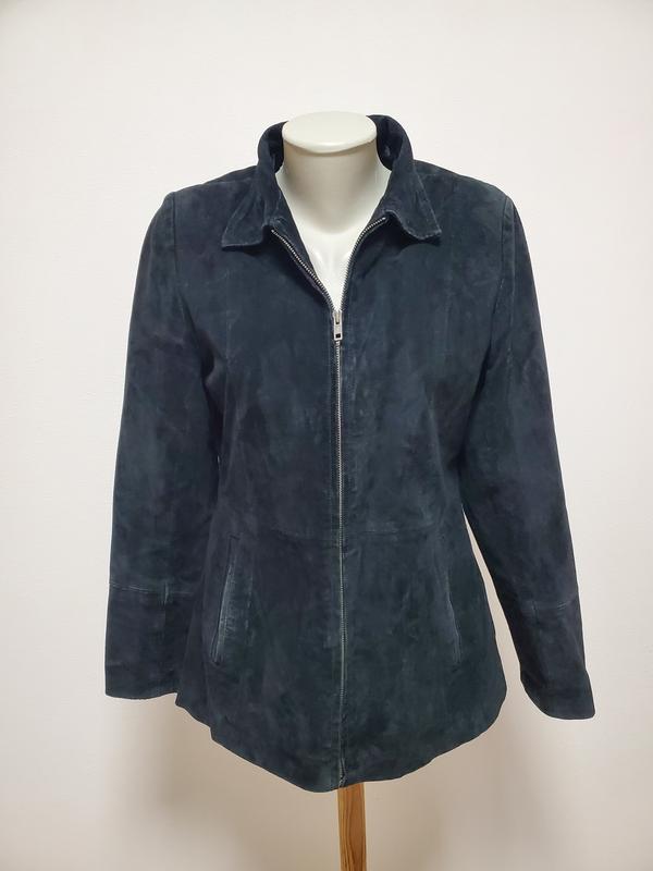 Хороша куртка із м'якої шкіри замши. ПОГ 49, ПОТ 44,5, ПОБ 56, плечі 42, рукав 62, довжина 70 см.