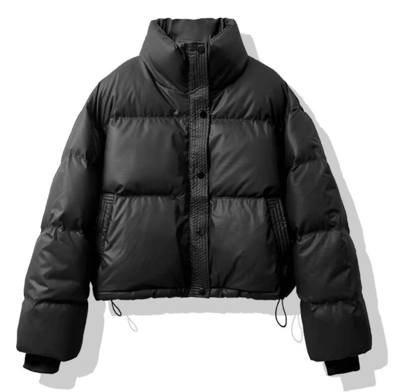 Стильна укорочена діноча куртка на пуху в чорному кольорі