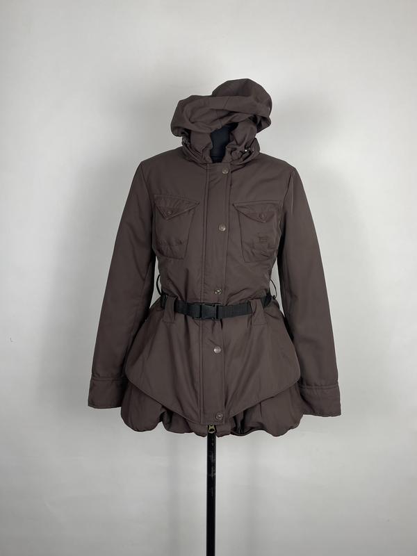 Marithe francois girbaud куртка коричнева приталена з капюшоном тепла