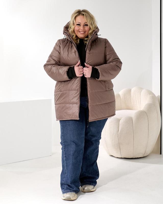 Куртка жіноча мокко коричнева коротка з капюшоном тепла осіння весняна зимова