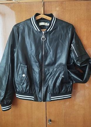 Продаю стильну куртку-бомбер Ціна : 1800 грн. Заміри : ОГ 54 см, резинка внизу 47 розтягується до 54 см В гарному стані Матеріал: еко шкіра
