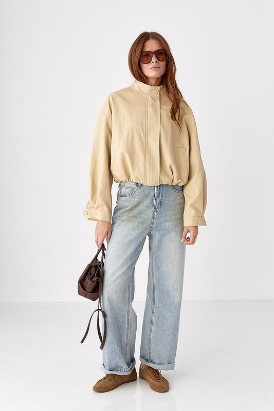 Укорочена куртка-бомбер із м’якої екошкіри — стильна модель у вільному крої, що поєднує комфорт і трендовий вигляд. Має горловину-стійку. Тканина: штучна шкіра (50% поліуретан , 45% віскоза, 5% металеве волокно) Розміри: ONE SIZE Виробник: Китай 89006