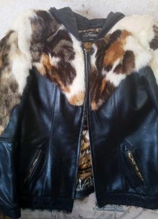 шкіряна і натуральне хутро кролика, дуже тепла, є підстібка, рукави та капюшон-кожзам, стан шикарне. довжина 61 рукав 59 ОГ 45 Внизу 47