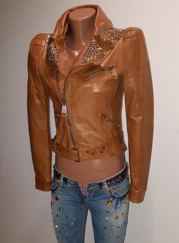 Сстильная куртка -косуха з натуральної шкіри, одягнена 1-2 рази.Дуже м'яка шкіра, незважаючи на кількість заклепок - куртка легка. Заклепки золото - мідь. Стан відмінний. Розмір IT 40. Ціна нової 300 євро. дивіться інші мої оголошення, підписуйтесь, продаю багато,распродаю шафа шопоголіка