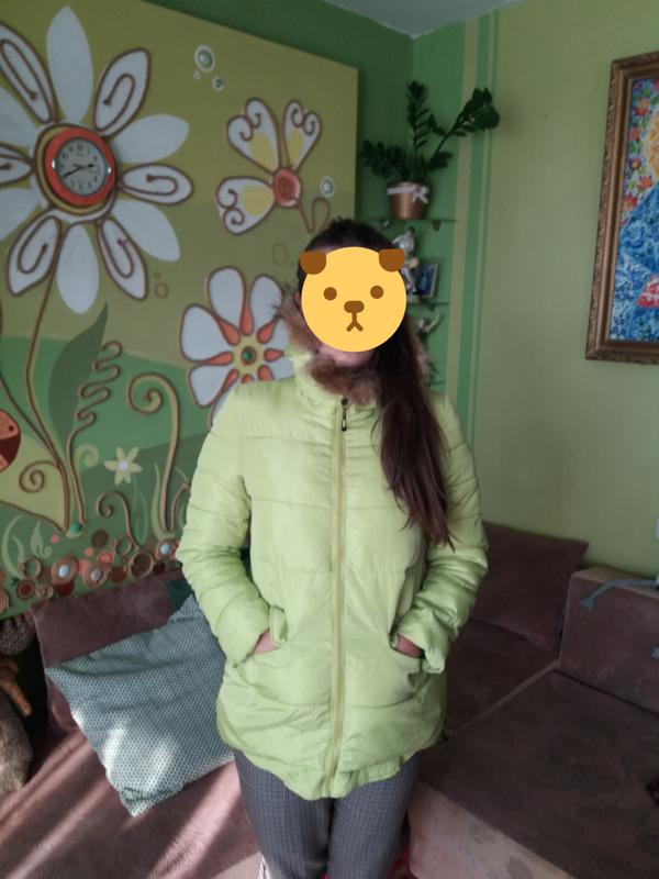 Жіноча куртка білі салатового кольору. Пише розмір xxl, але реально підійде на l /xl. Довжина 75см, ширина внизу 62 см, рукав 60 см, плечі 50 див. Наповнювач - синтепон. Куртка тепленька і дуже легенька. На капішоні натуральне хутро. По боках є можливість зробити куртку ширшою, розстібнувши замки. Вся фурнітура справна. Ідеальний варіант для активного проведення часу.