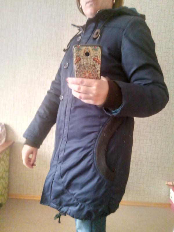 Куртка темно-синього кольору. Є капюшон. Цікаво оформленні кишені. Куртка тепла, на синтапоні. Стан ідеальний. Одягнута один раз. При зацікавленості надішлю багато додаткових фото. Чудово п ідійде на розмір S.