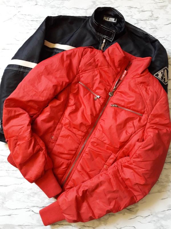 Класна курточка італійського бренду.Колір червоний.Тканина поліестер,наповнювач синтепон.Фурнітура з логотипом фірми.Застібається на змійку.Два нагрудних кишені-обманки.Два врізних кишені на кнопках.Вниз на широкій резинці. Курточка легка,комфортна,стильна. Виміри зроблені по підкладці: Плечі 36 Пог 48 По низу 41-44 Рукав 70 Висота 59. Поліестер 100%. Обміну та повернення немає!Оплата 100% на карту Приват банку!Дивіться інші мої лоти!Комбіную в одну посилку! Всім приємних покупок!