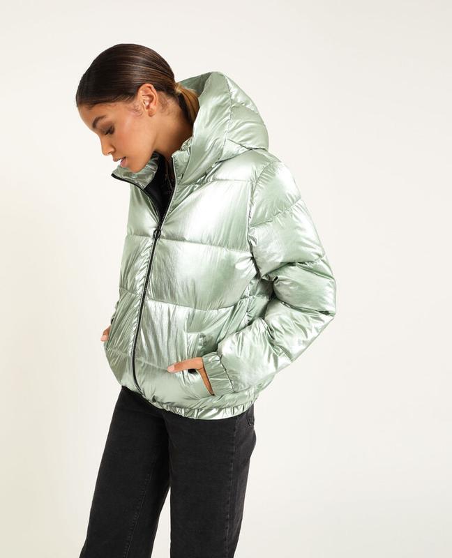 Фірмова стильна стьобана куртка бірюзового кольору металік. Пр-під Німеччина. В наявності три розміри: M, L і XL. - комір-стійка, блискавка - еластичні манжети (по низу куртки і рукавів) - бічні кишені з кнопкою - капюшон