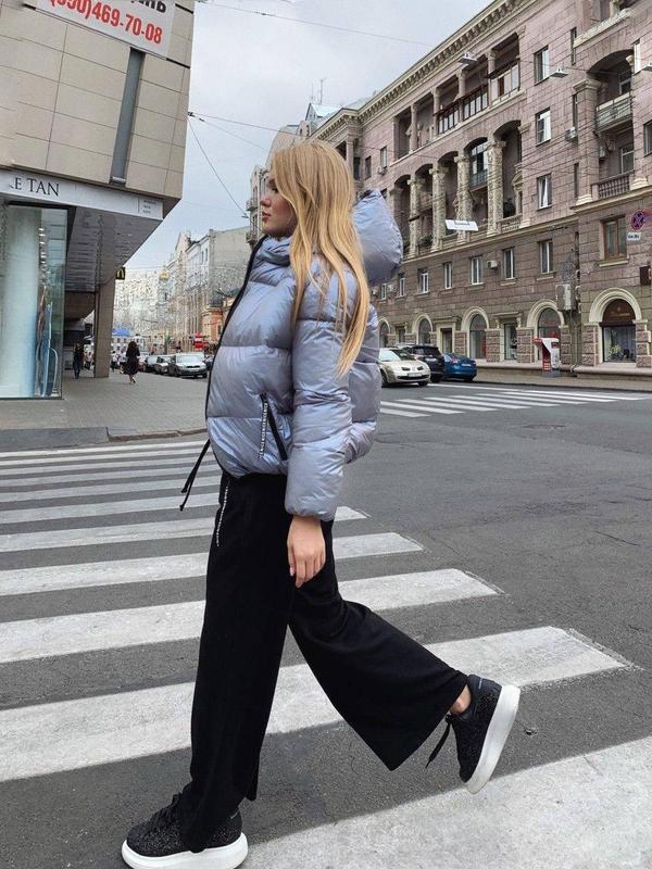 Курточка на кнопках, є кишені🌟 арт 700-7 ▫️тканина плащівка з напиленням, переливається дуже красиво ▫️Наповнювач штучний лебединий пух {аеро пух} 300 грам ▫️Дуже легка і невагома. ▫️Розмір 42-46 ▫️Доступна в цій тканині у 3 кольорах: сірий, пудра, синя 🛒ВІДПРАВКА замовлення 1-5 раб. дня! ⠀