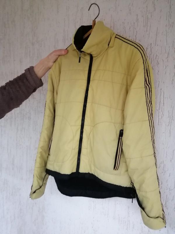 Куртка на сентипоне с лампасами на рукавах. Утеплитель флис. Замеры: длина по спинке 65,рукав 60, полуобхват 50. Цвет между фисташковым и горчичным,первое фото.