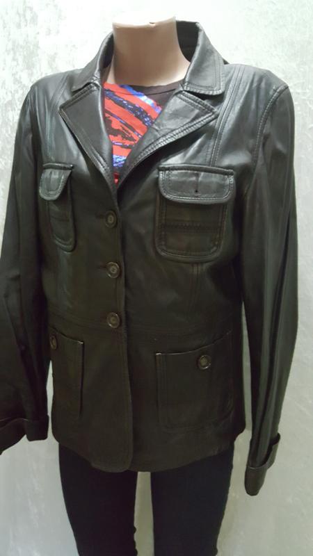 Продается стильная женская куртка в стиле милитари из натуральной кожи от" Maddison". Цвет темно коричневый. Современный фасон. Практически новая.(одета раз). Не порвана. не потерта. Кожа- натуральная теленок. Очень мягкая , нежная на ощупь .Перед украшен 4 накладным карманами , верхние - с клапанами на пуговицах, нижние -на пуговичке. Талия-отрезная. фасон притален. ложится красиво по фигуре. Манжет куртки с отворотом. можно подвернуть или удлинить . Подкладка целая. чистая.как новая. Есть запасная пуговичка. Размер 40. Замеры: Длина по спинке -60 см Длина рукава -64 см с отворотом Плечо -12 см ПОГ -51 см ПОТ -44 см ПОН -50 см Все замеры производились в застегнутом состоянии.. См др мои обявления Оплата на карту Привата. Отправка укр/новой почтой Взятие номера карты и не оплата- жалоба администрации. Все нюансы оговариваются -до сделки. Личным стилистом не работаю. Подбирайте себе одежду самостоятельно