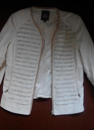 Куртка екокожа. Гіпюр.Ланцюжок.Кишені. На 44-46 (М). Є маленькі дефекти. На загальний вигляд особливо не впливає . Виглядає супер за таку ціну!груди-45см Длина-54смРукав-63см