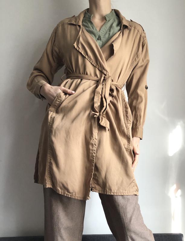 Світло коричневий/ кавовий легкий плащ на поясі,можна закатати рукава і застебнути додатково. Розмір м-l