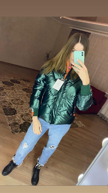 Демісезонна блискуча стьогана куртка☝🏼 Тканина-поліестер🖤 Рукава на манжетах, високий комірець👌🏼 Смарагдовий колір💚
