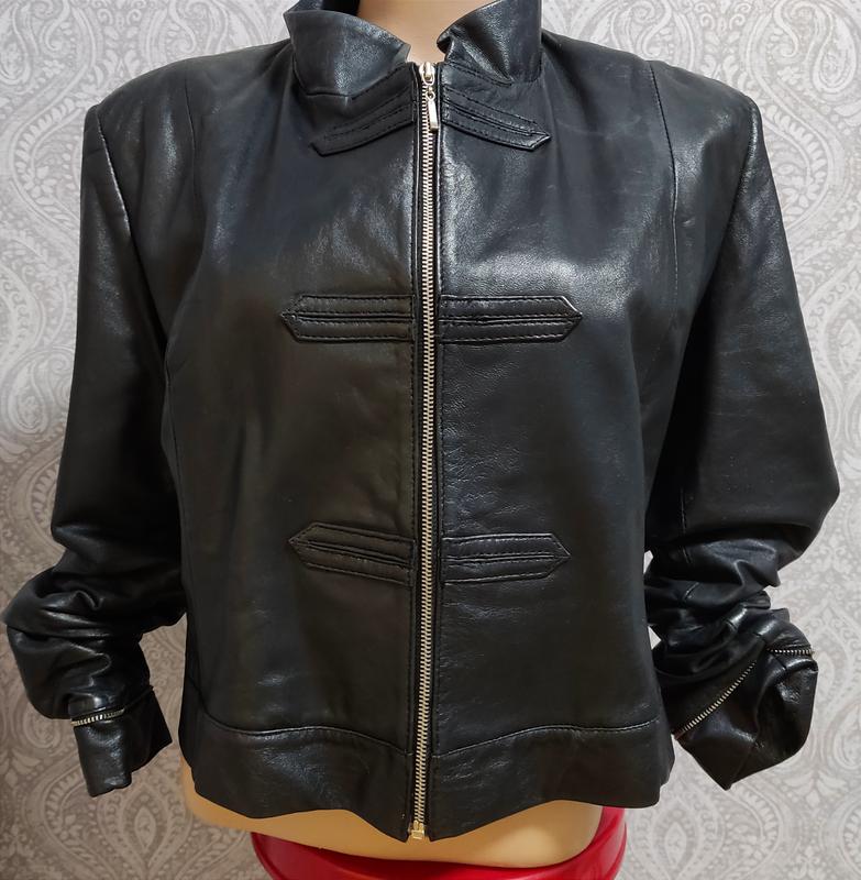 Кожанка.Змейки рабочим.Есть дефект-надо починить или заменить подкладку.Длина-48см,плечи-44см,рукава от плеча-47см,ПОГ-50см.