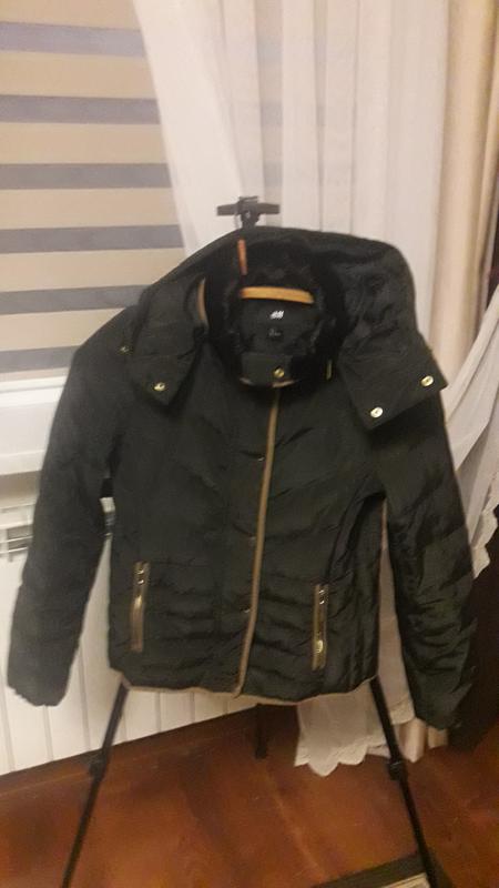 Куртка фірмиН&M. Довжина по спинці-61см.,рукав-65см.,пог-45см.Зліва на груді є невелика пляма,її практично не видно.Капішон відшпиляється.