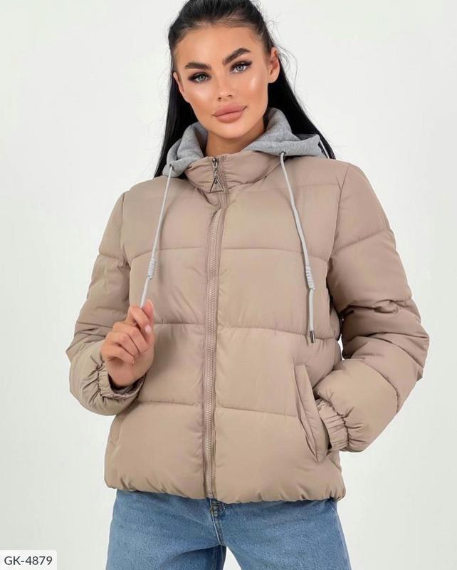 Тканина плащівка матова щільна «канада» Наповнювач силікон - 200 Капюшон з трикотажу на силіконі 100 Капюшон йде на змійці, відстібається Кольори : чорний, бежевий , жовтий, малиновий, блакитний, фіолетовий, Довжина виробу по спинці - 65 сантиметрів Довжина рукава - 63 см