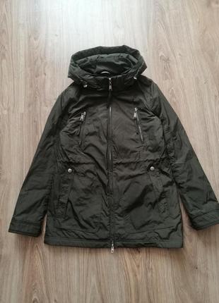 В идеальном состоянии. На весну - осень. Удлиненная, с тонким утеплителем и большим капюшоном, он отстёгивается .
