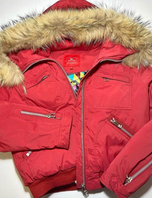 Состояние на фото, дефектов нет. Подходит на размер М и L. Замеры на фото. Съёмный и капюшон и мех (натуральный).Очень тёплая и уютная.