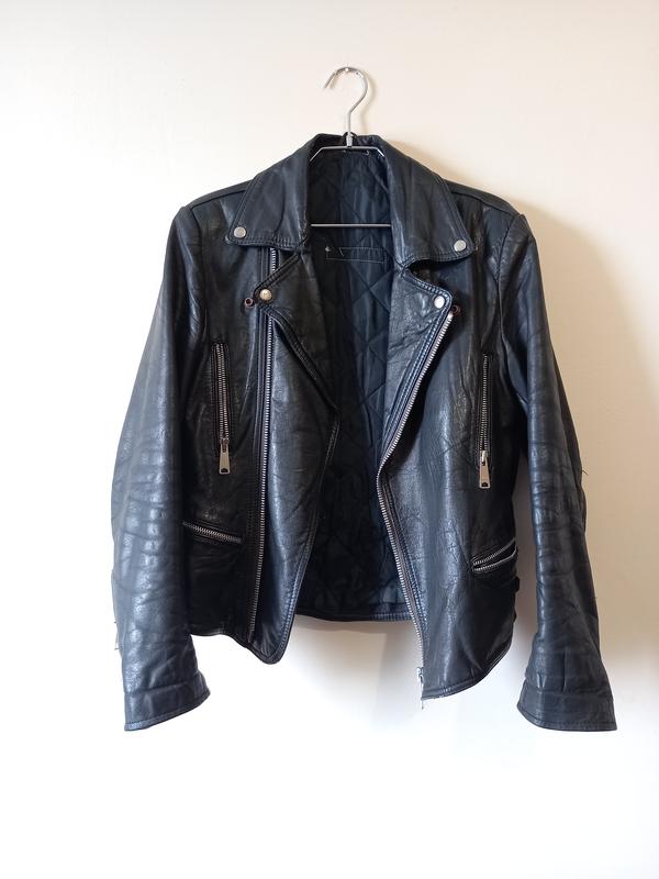 натуральна груба шкіра вінтаж якість поза часом можливий доп забарвлення є дефект на рукаві вирвана блискавка, потрібна послуга швачки довжина 59 довжина рукава 62 ширина плечей 41 пог 45 піт 40 добротна фурнітура метталік, вся испрвна