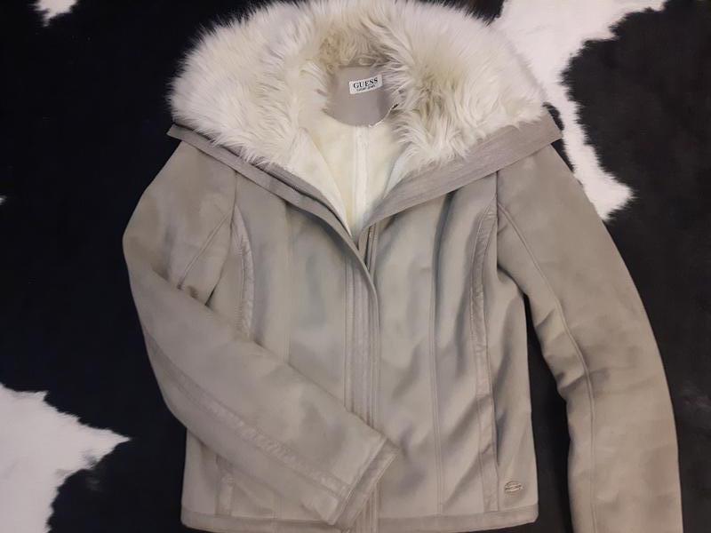Дуже стильна курточка Guess, виконана з штучної чиненої шкіри. В чудовому стані, без нюансів. Розміри: ОГ - 94 см, обсяг по нижньому краю - 92 см, довжина - 58 см, довжина рукава від плеча - 68 см, ширина плечей - 41 см,