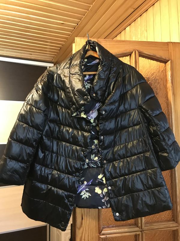 Куртка двохстороння , з одної сторони чорна з іншої квітки в , стан ідеальний , рукав трьохчетвертний.