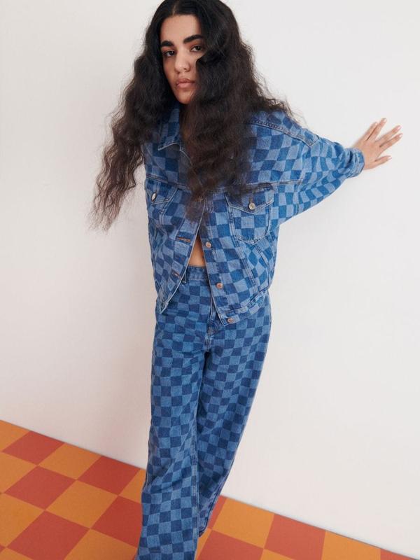 Джинсова куртка reserved класичний комір довгі рукави з манжетами на гудзиках спущений плечовий шов застібка на два гудзики бічні кишені