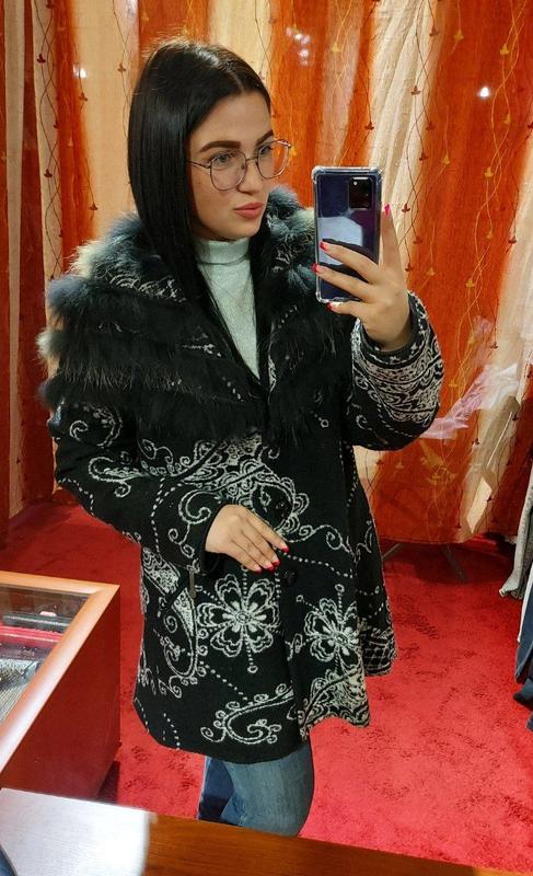 Укорочене пальто із натуральної вовни та натуральним хутром
