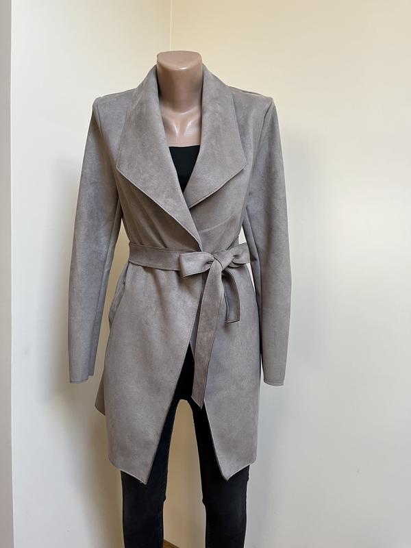 Новий замшевий плащ,накидка, гарно сидить по фігурі, має збоку кишені і поясок, розмір S, бренд Reserved