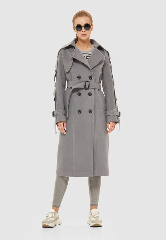 Серое женское демисезонное пальто из итальянской шерстяной ткани с перелиной и патами