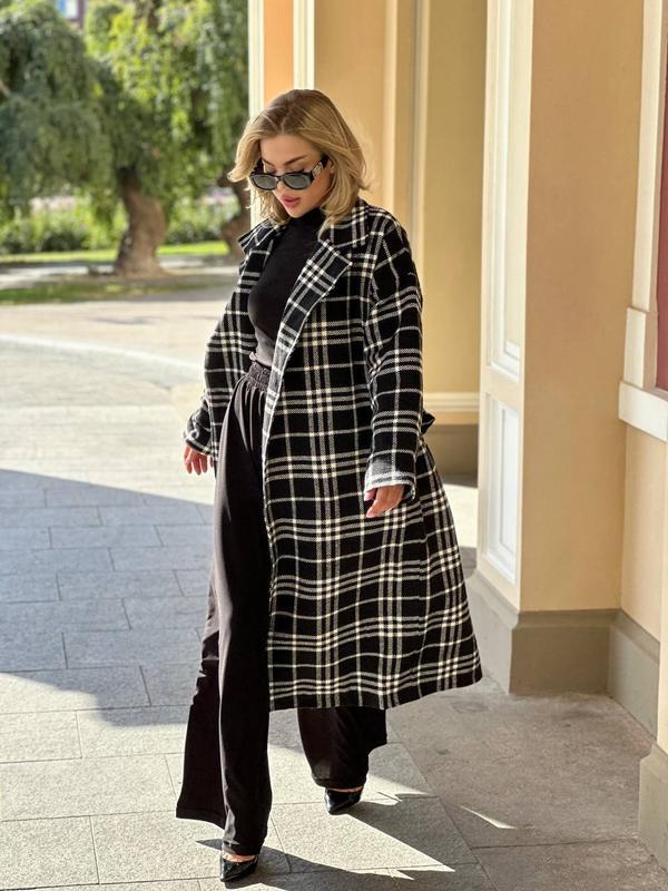 Роскошное кашемировое пальто в клеточку свободное длинное миди оверсайз чёрное белое бойфр...