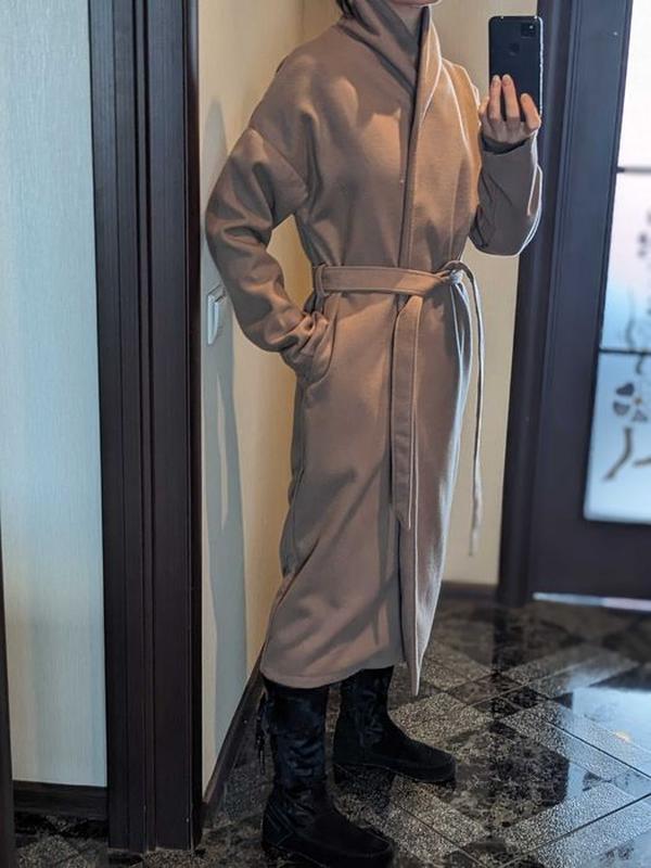 Нове пальто смачного кольору мокко, карамель.. Куплене, але не одягалось, так як є подібне. Пальто hand made, пошив на запах.. стильне..красивого кольору- мокко..карамель.. нюдове Розмір оверсайз. xs-s-m Довжина 110 Пог 56 по шву зложила, але так, як запах може бути різний, тому це умовні заміри... Без підкладки, але не зовсім тонке...на осінь-весну. Еко-кашемір.
