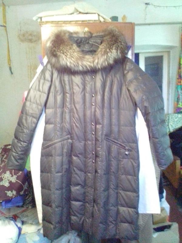 Розмір 52, НОГ - 58 см, НОТ- 51 см, НОС- 58 см, Довжина від плеча 106 см Колір темно сірий.Капюшон не відстібається.Хутро натуральна чорнобурка, відстібається.Змійка.Кнопки дублюються на зовнішній стороні дуже красивою бюжетерією у вигляді перлин. Якщо хтось забажає, можна зробити комплектом з шапкою з чорнобурки. Ціна 260 грн.