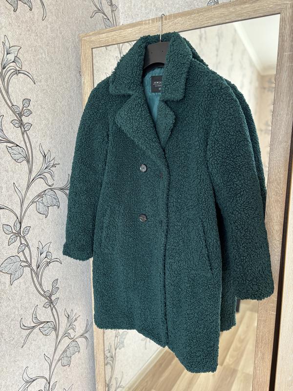Жіноче пальто демімезон зеленого кольору, розмір 34 (ХС), крій прямий Заміри: Довжина 95см Ширина плечей 44см Довжина рукава 61см Ширина по довжині 50см Є невеликі ковтунці, які не впливають на зовнішній вигляд