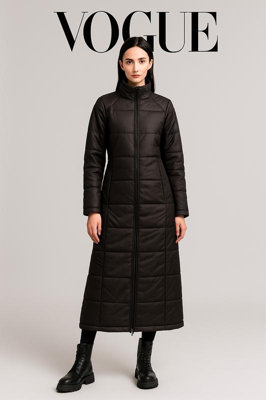 Стильне жіноче довге стьобане пальто cherokee у благородному відтінку темно-шоколадно-сіри...