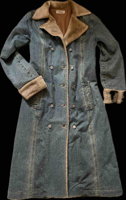 Пальто джинсове,жіноче,б/в.Розмір-10/36.комір,рукава-штучне хутро.Заміри: довжина-110 см,рукава-67 см,плече-10см,напівобʼєм грудей-52 см,напівобʼєм таліі-44 см,напівобʼєм бедер-50 см.Бренд- TW