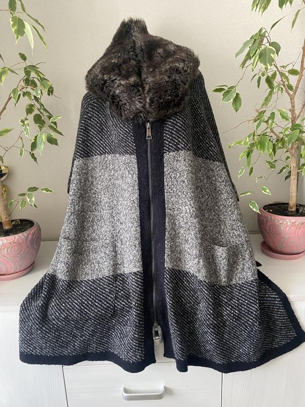 Шикарне дуже тепле і плотне манто з каптуром з красивим еко-хутром (мʼяке, виглядає супер) Великий розмір Суперякість🔥 В складі є вовна Підійде на осінь-весну, навіть теплу зиму, якщо під низ одягнути теплу річ. Застібка на блискавці Підійде чудово для пухнастих пані, причому сяде гарно на розміри від L до 6 XL, бо це манто Склад є на бірках Стан ідеальний, без жодних нюансів Заміри: Довжина- 84 Ширина - 105