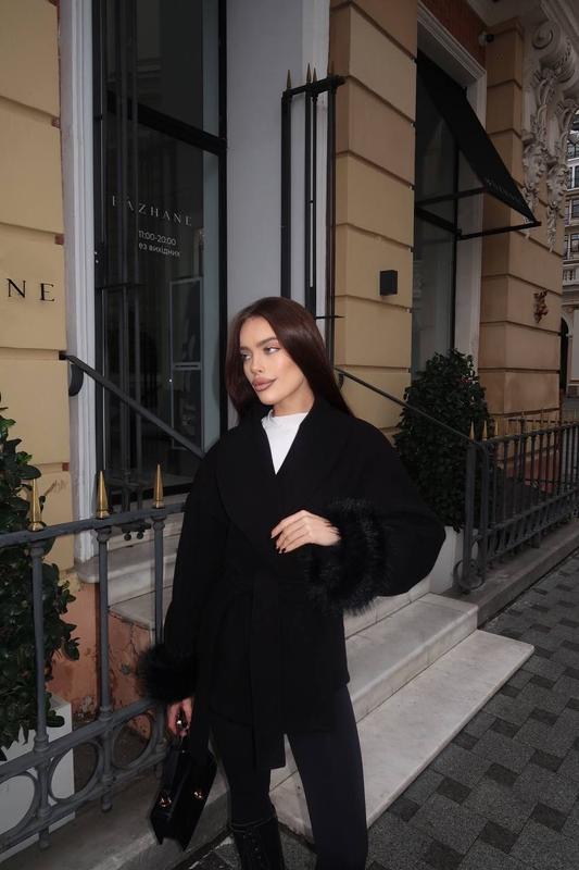 Пальто🥰 Мод: 824-018 Тканина: якісний щільний пальтовий кашемір; штучне екохутро, без підкладки Розмір: 42-48 Колір: чорний, шоколадний, сірий Ціна- 1389 грн🔥 Довжина по спинці 70 см Рукав від ворота 80 см ОГ 130 см