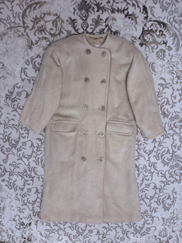 Дуже тепле та стильне пальто з підкладкою та двома зовнішніми кишенями Склад: 40% вовна, 30% мохер, 30% альпака Довжина 122 см, довжина рукава 52 см, ширина під пахвами 63 см, ширина в талії 63 см, плечі 55 см