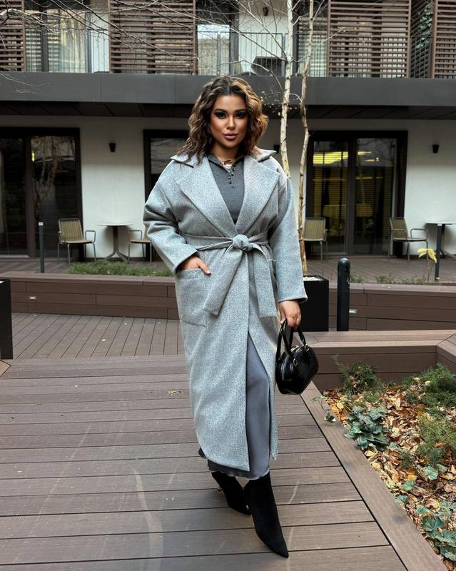 Кашемірове жіноче пальто з поясом великих розмірів, сіре