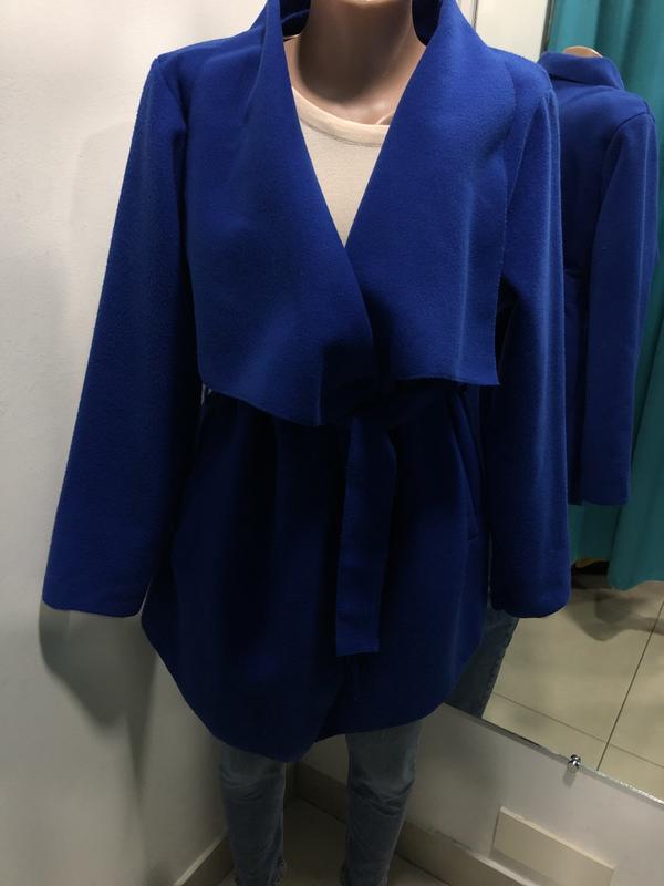 Класичне синє пальто. Приємна тканина, підкреслює фігуру